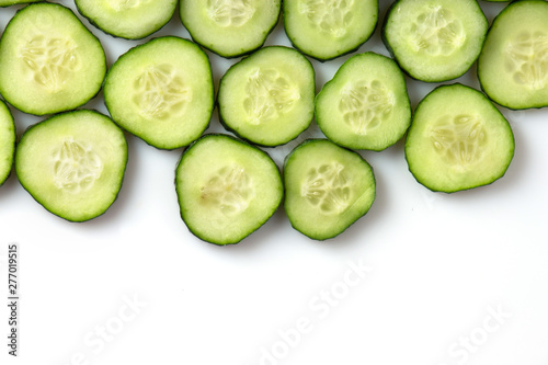 fresh green cucumber, cut with rings on a white background