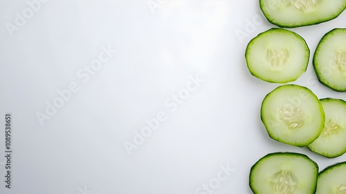 Fresh Green Cucumber Slices on Minimalistic White Background with Copy Space