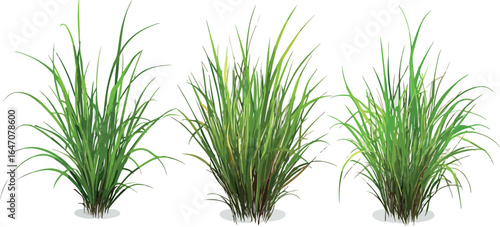 Fresh green dill and grass plants with rosemary leaves isolated on a white background