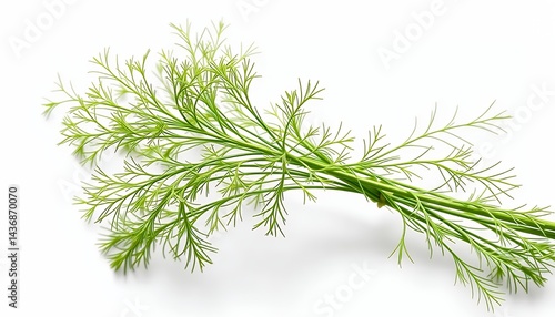 Fresh Green Dill Sprig Isolated On White Screen Background Featuring Delicate Feathery Leaves And Slender Stems Ideal For Culinary And Herb Garden Designs And Advertising