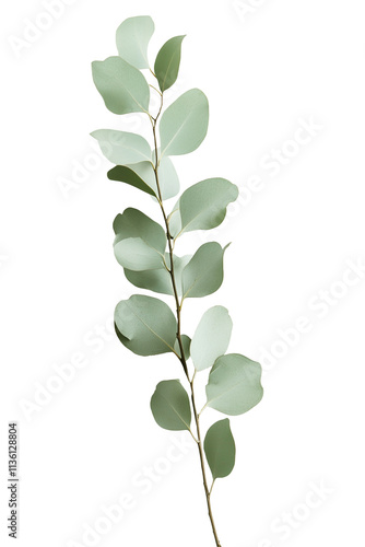 Fresh green eucalyptus spring branch cut out isolated on transparent background