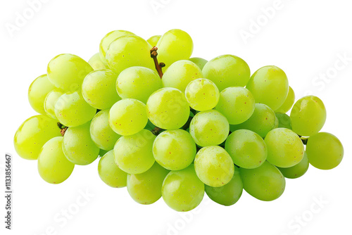 Fresh Green Grapes Bunch with Dew Drops Glistening on the Surface with isolated on transparent background