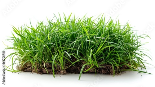 Fresh green grass isolated on a clean white background with natural texture and vibrant color