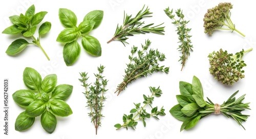 Fresh Green Herbs Assorted Basil Rosemary Thyme Oregano Floral Culinary Ingredients