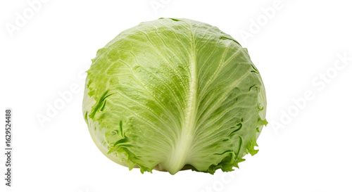Fresh green iceberg lettuce head isolated on transparent background, a crisp and healthy vegetable, perfect for salads, sandwiches, and a nutritious diet