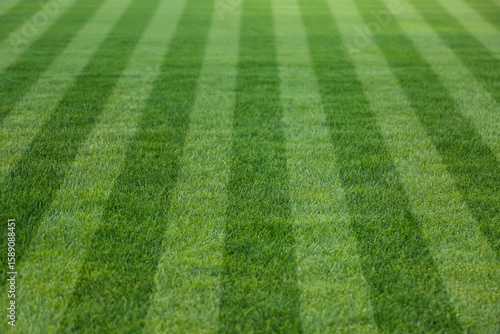 Fresh green lawn cut in stripes, closeup