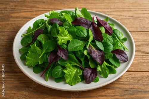 Fresh green leafy salad served on a wooden platter, a nutritious snack