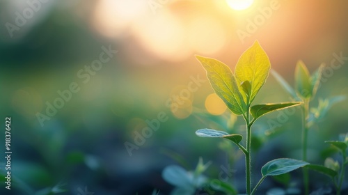 Fresh Green Leaves Illuminated by Soft Morning Light