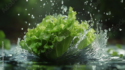 Fresh green lettuce with water splash, close up. Healthy food concept