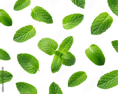 Fresh green mint leaves pattern on black background. Perfect for food, drink, or health designs.