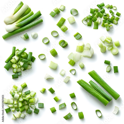 Fresh Green Onions Cut and Isolated on White Background