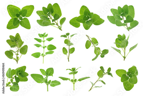 Fresh green oregano isolated on white, set