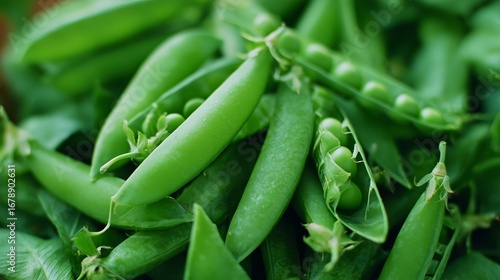 Fresh green peas gathered from a garden on a sunny day during summer harvest