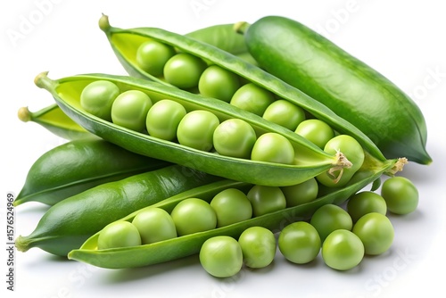 Fresh Green Peas in Pods on White Background
