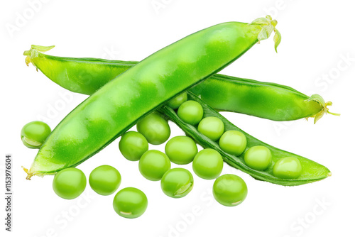 Fresh green peas pod with bean isolated on white background png transparent clipart.