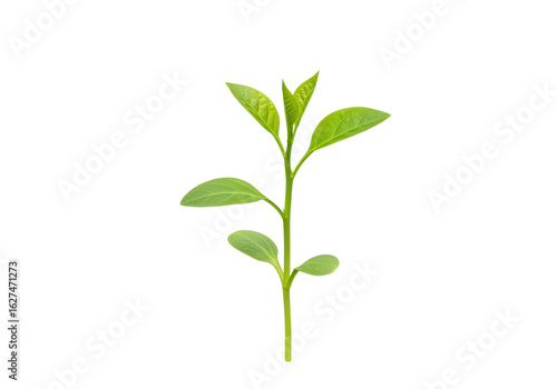 Fresh green plant sprout with vibrant leaves isolated on a white background