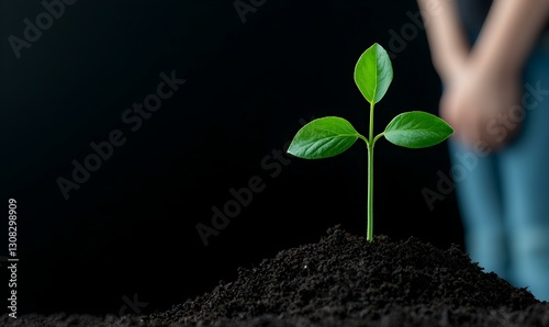 Fresh Green Plant Sprouting from Dark Soil in Studio Setting