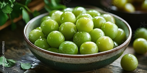 Fresh green plum and preserved green plum, highlighting the vibrant color and unique flavors of both fresh green plum and its preserved counterpart, ideal for culinary inspirations.