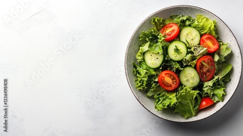 Fresh green salad with tomatoes and cucumbers in a bowl. (1)