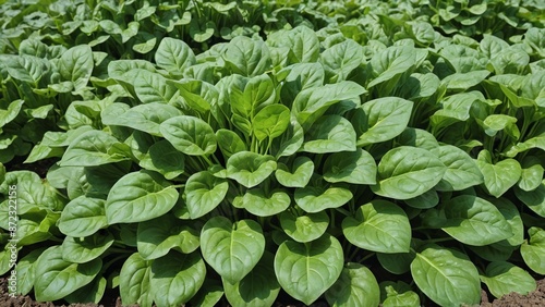 Fresh Green Spinach Harvest on Sunlit Farm Field