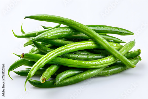 Fresh Green String Beans Pile on White Background for Culinary and Food Presentation