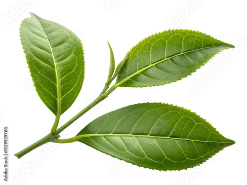 Fresh green tea leaves on a branch showcasing healthy growth and texture in a natural setting