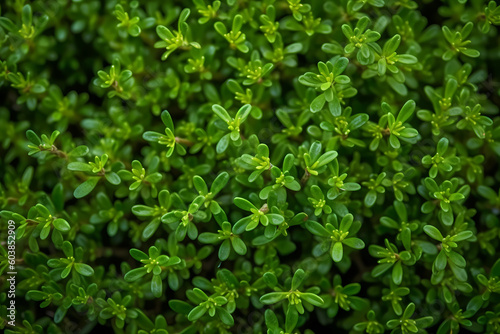 Fresh green thyme leaves filling the entire frame, fresh herbs, generative AI