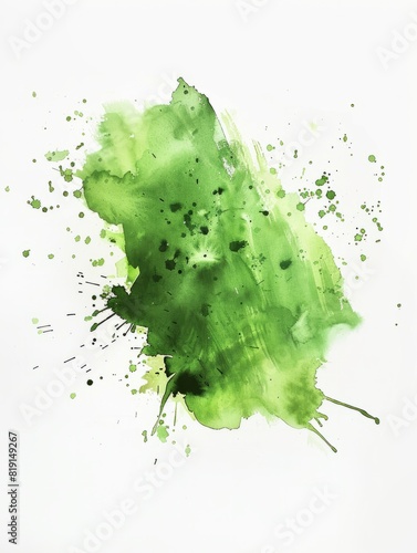 fresh green watercolor surface with splatters on white background, illustration