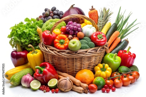 Fresh Harvest of Colorful Fruits and Vegetables in Wicker Basket