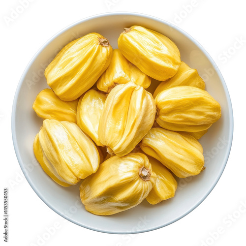 Fresh jackfruit pieces artistically arranged on a white plate against a clean Transparent background, Jackfruit in white plate isolated on PNG background