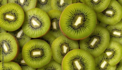 Fresh, juicy green kiwi fruit slices offer a healthy and sweet taste of the tropics, perfect for a diet