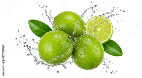 Fresh Juicy Limes Splashing Water Green Citrus Fruits Healthy Vitamin C Refreshing Summer Drink