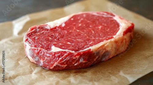Fresh juicy piece of red meat on the cooking table in the kitchen
