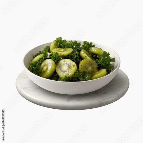 Fresh Kiwi and Kale Salad in White Bowl on Marble Coaster