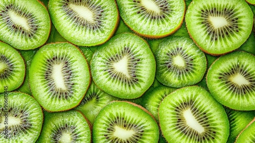 Fresh kiwi slices arranged to cover the whole background with vibrant green.