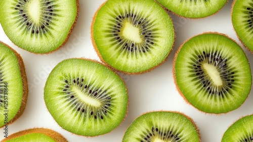 Fresh kiwi slices on a white surface, great for food photography and recipes