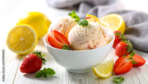 Fresh lemon and strawberry ice cream