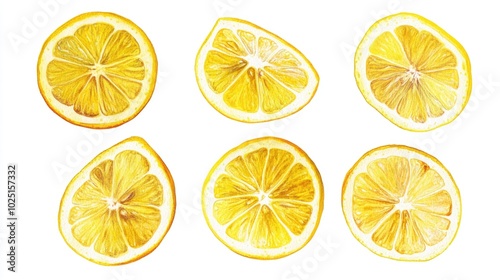 Fresh lemon slices arranged on a clean white surface, perfect for food styling and photography