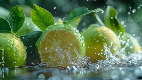 Fresh lemons with water droplets on a nature background