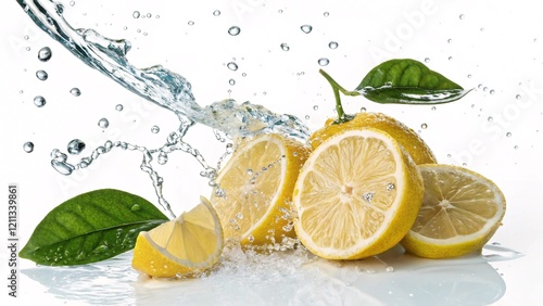 Fresh Lemons with Water Splash on White Background, Vibrant & Juicy V8