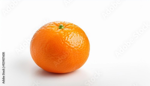 Fresh Mandarin Orange: A vibrant, ripe mandarin orange with a glossy skin and a green stem, isolated against a pure white background. This photo is perfect for showcasing the beauty and freshness of c