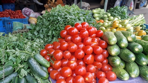 Fresh Market Vegetables, Tomatoes, Cucumbers, Parsley
