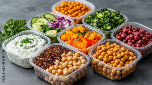 Fresh meal prep setup featuring colorful ingredients in containers, perfect for healthy eating
