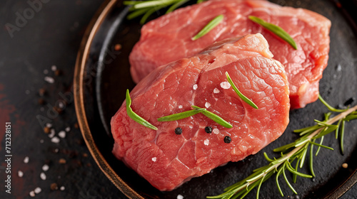 fresh meat steak with rosemary top view