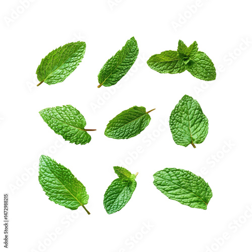 Fresh Mint Leaves Collection Isolated Green Mint Sprigs on Transparent Background