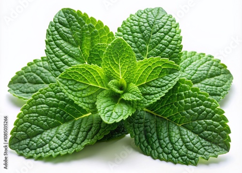 Fresh Mint Leaves Isolated on a White Background with Rule of Thirds Composition for Culinary and Herbal Use in Cooking, Beverages, and Natural Remedies