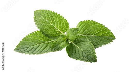 Fresh mint leaves PNG on transparent background suitable for organic product packaging, herbal tea ingredient, healthy beverage illustration and natural culinary design use