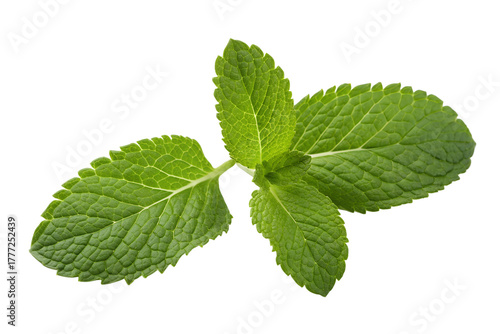Fresh Mint Leaves Sprig PNG | Triple Leaf Mint Herb Isolated on Black