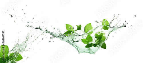 fresh mint leaves with splashing water drops isolated on white or transparent png