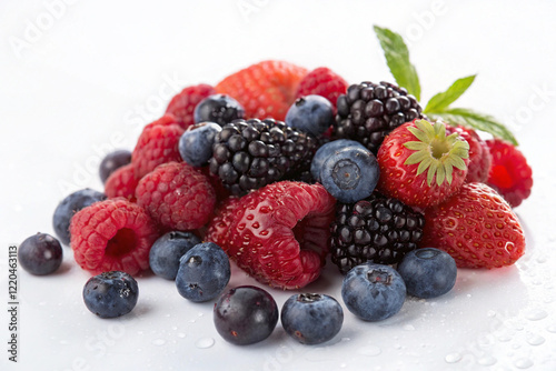 Fresh mixed berries, blueberries, mixed berries, raspberries, strawberries on a white background